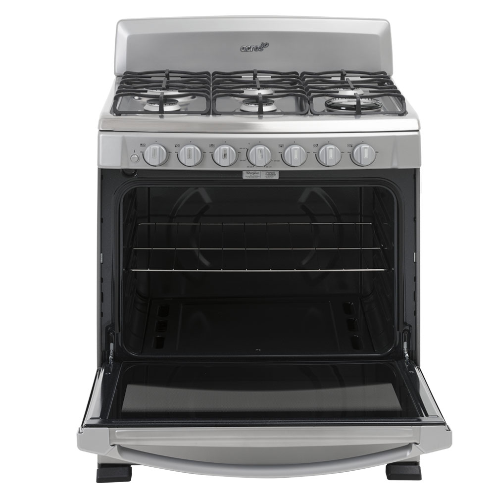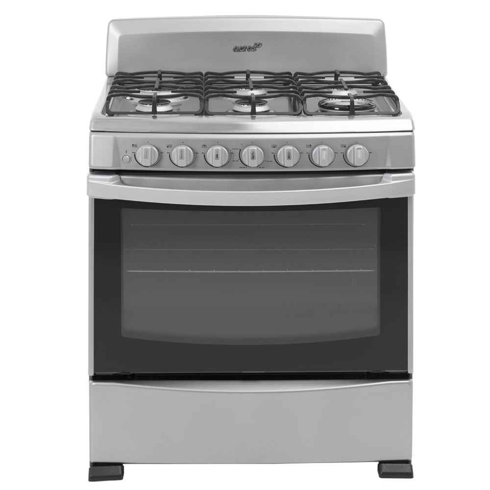 Estufa al piso 30″ en color Titanio con la que tu cocina lucirá moderna y actual; equipada con 3 nuevas parrillas de hierro fundido, 6 quemadores de aluminio de los cuales incluye un exclusivo Súper MAX con el que ahorrarás hasta 24% de gas, cubierta de Acero Inoxidable, nuevas perillas y horno de 5.1 p³ con ventana panorámica y sistema de cerrado suave. Acros Inspirada en ti.