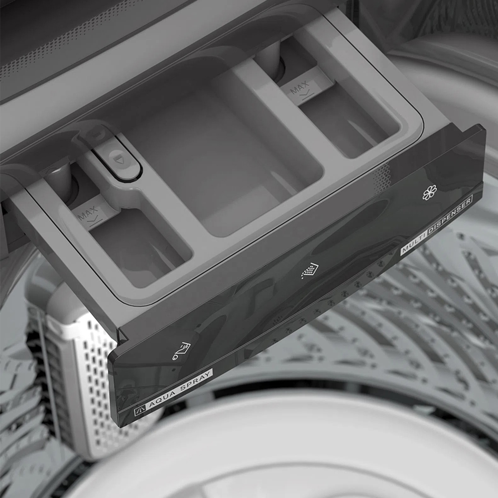 Tecnología Smart Action para mayor remoción de manchas, ahorro de agua y energético, tapa de vidrio templado y panel digital en tapa con opción de bloqueo. Cuenta con multidispensador, 11 ciclos automáticos y 4 manuales, opción de remojo adicional, luz LED indicadora de status de ciclo, canasta de acero inoxidable. Tamaño compacto pero gran capacidad